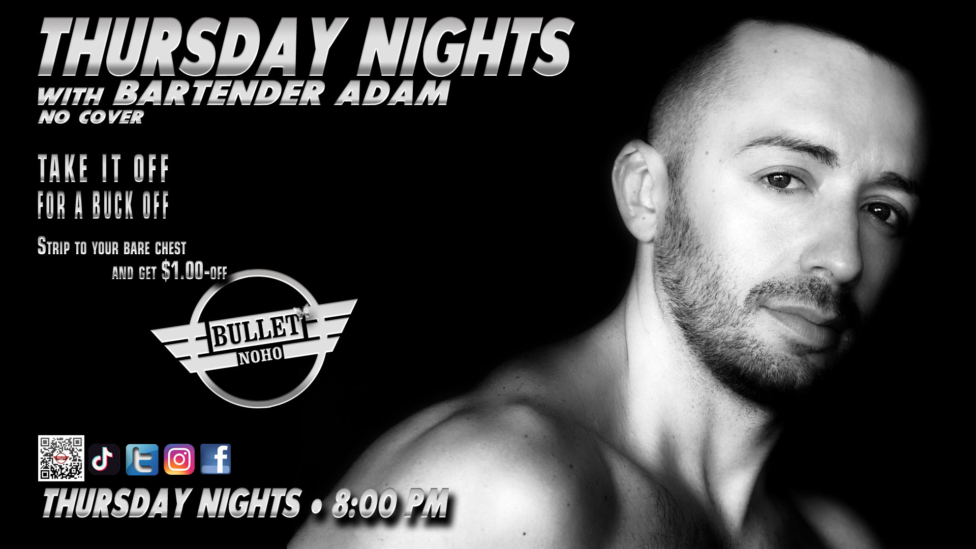 MORE INFO: STRIP TO YOUR BARE CHEST AND GET $1 OFF; NO COVER